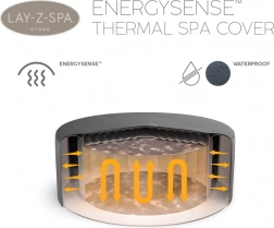Premiumowa pokrywa termiczna Lay‑Z‑Spa EnergySense Plus została zaprojektowana z myślą o maksymalnej efektywności i długiej żywotności. Trójwarstwowy materiał DuraPlus jest odporny na promieniowanie UV i warunki atmosferyczne, a udoskonalona podwójna warstwa izolacyjna przyspiesza nagrzewanie wody i wydłuża czas utrzymania przyjemnej temperatury w wannie.