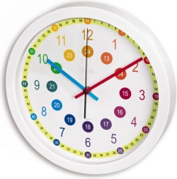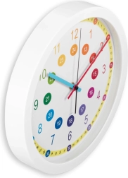Wesoły design dla dzieci: Ten zegar ścienny świetnie ożywi każdy pokój i zachęci dzieci do nauki odczytywania czasu w formie zabawy.