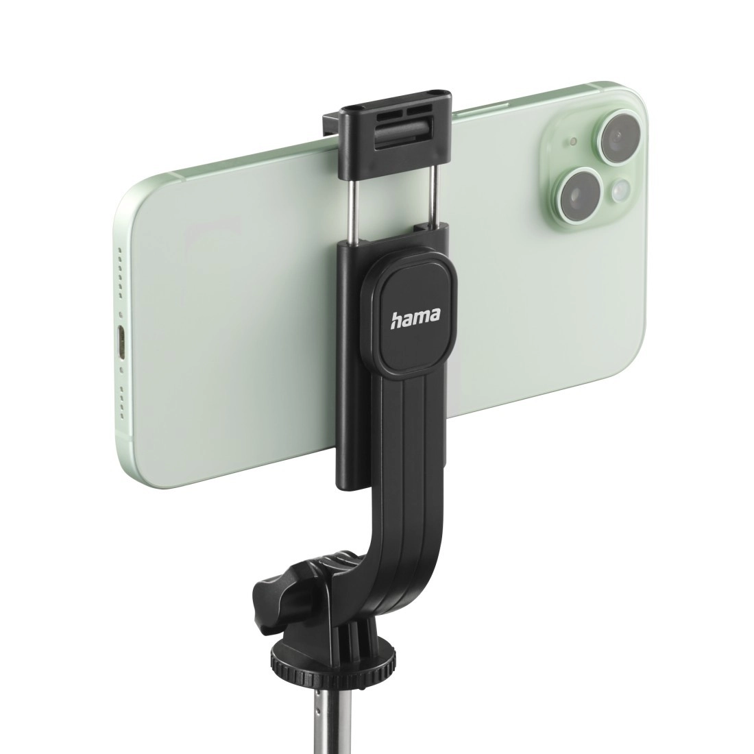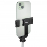 Szybkozaciskowy uchwyt jest obrotowy, co umożliwia płynne przejście między trybem portretowym a poziomym. Kompatybilny ze smartfonami o szerokości 6,2–9,0 cm, a żebrowane gumowe podkładki chronią telefon i trzymają go pewnie na miejscu. Zintegrowany tripod z gumowymi nogami zwiększa stabilność podczas filmowania i fotografowania.