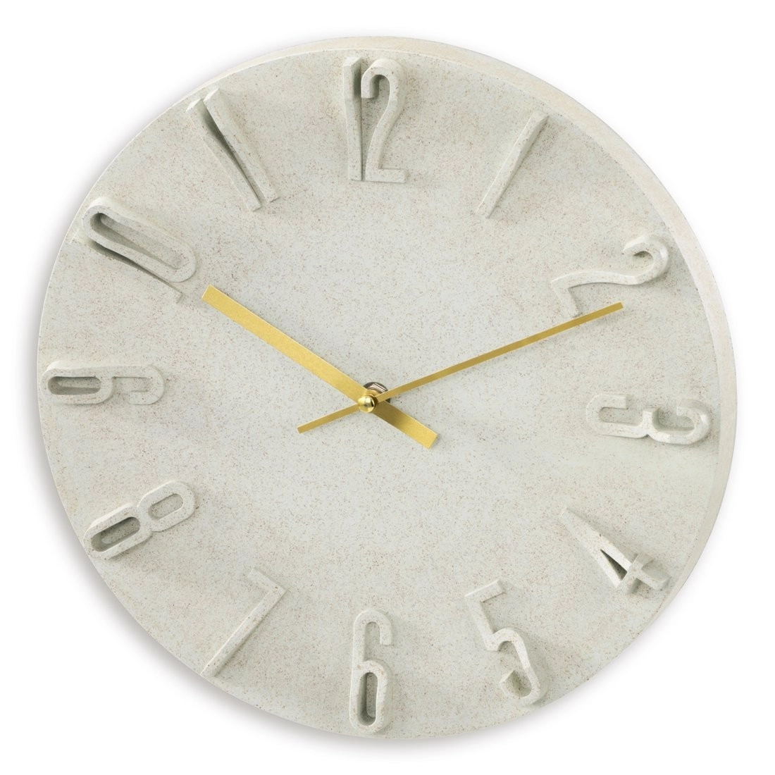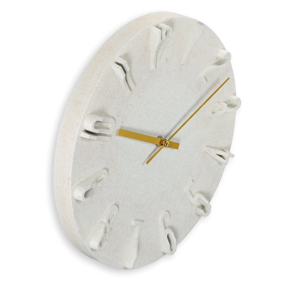Eleganckie złote wskazówki kontrastują z delikatnie fakturowaną beżową tarczą, dodając wnętrzu wyrafinowanego akcentu. Konstrukcja z udziałem 20% włókien słomy pszennej zmniejsza wpływ na środowisko, a certyfikowane opakowanie bez plastiku ułatwia recykling.