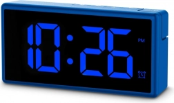 Stylowy budzik Hama Ibiza w kolorze niebieskim oferuje duży, doskonale czytelny wielokolorowy wyświetlacz LED, programowalny alarm z funkcją drzemki, wybór formatu 12/24 h oraz port USB 1 A do ładowania telefonu. Dzięki 4 poziomom jasności, w tym całkowitemu wygaszeniu podczas ładowania oraz wyborowi koloru cyfr (biały, niebieski, zielony, czerwony, gradient) idealnie dopasuje się do każdej sypialni.