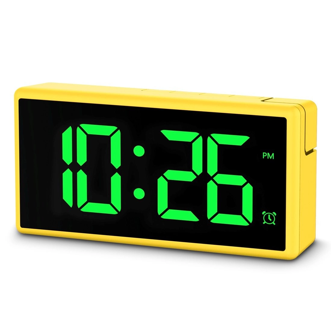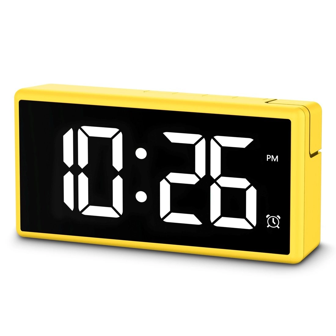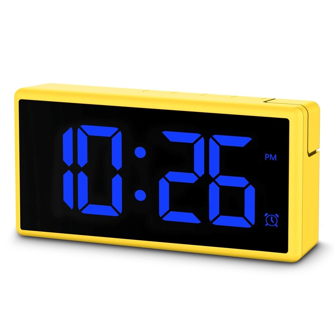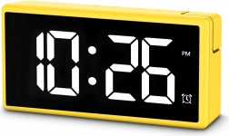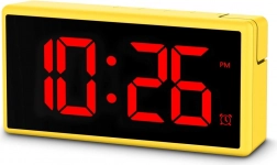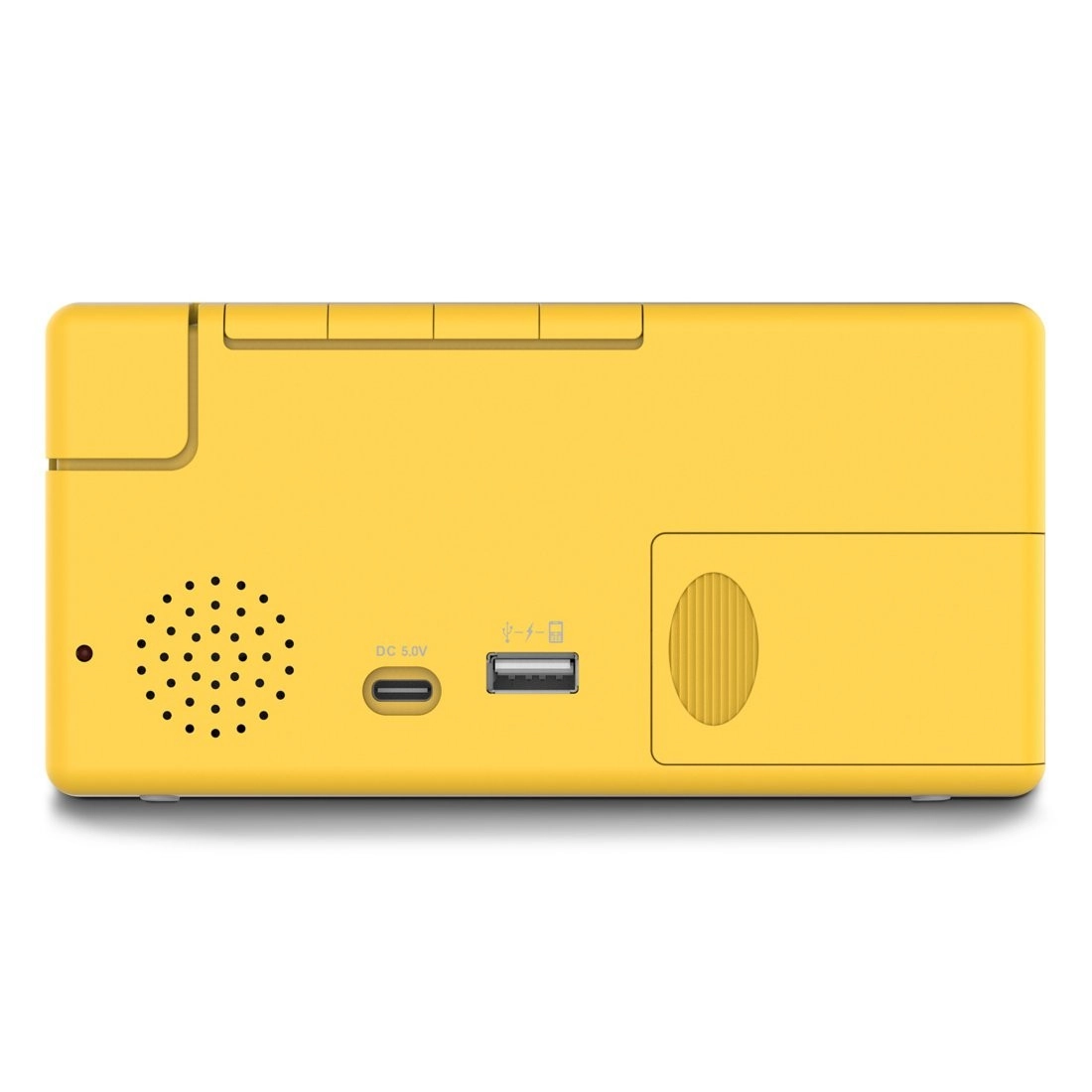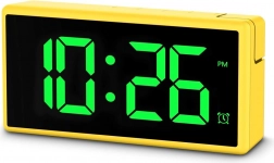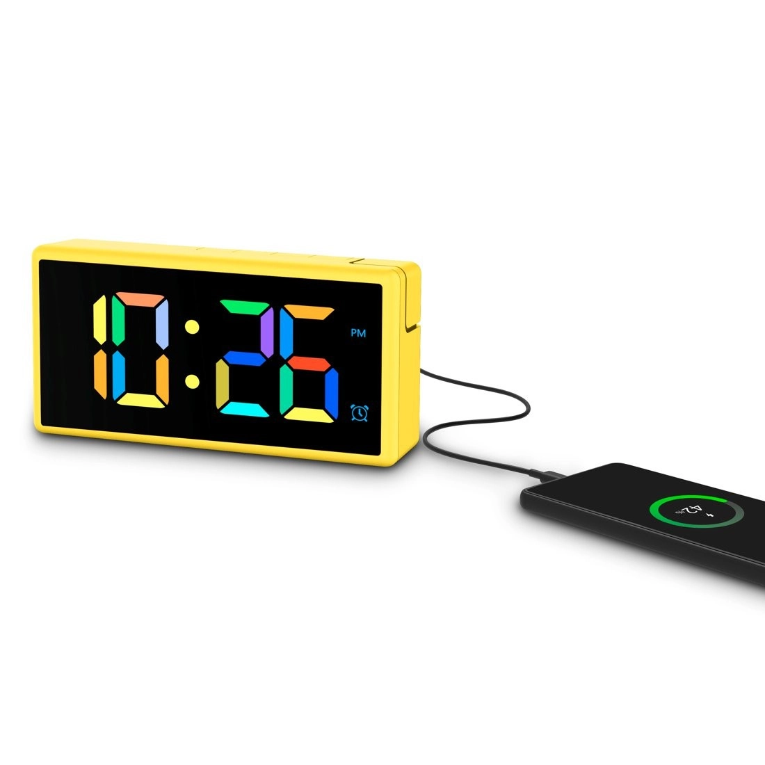 Stylowy i praktyczny cyfrowy budzik w energetycznym żółtym kolorze oferuje duży wielokolorowy wyświetlacz LED, programowalny alarm oraz port USB 1 A do ładowania telefonu. Dzięki 4 poziomom jasności, w tym całkowitemu wygaszeniu podczas ładowania, przełączaniu 12/24 h, funkcji drzemki i regulacji głośności alarmu (cichy/normalny/głośny) jest idealny do sypialni i pokoju dziecięcego.