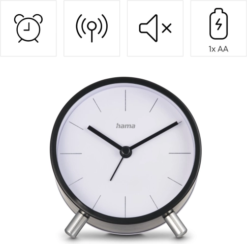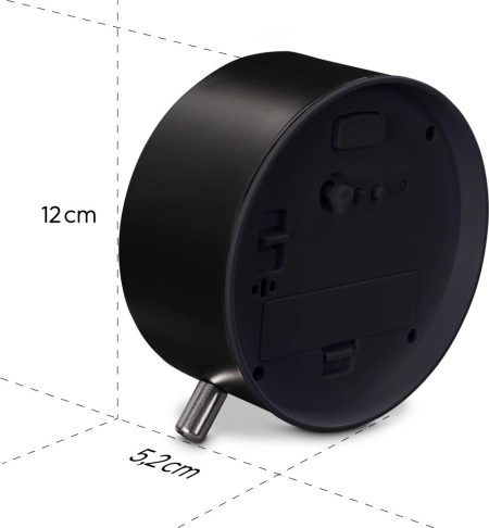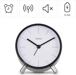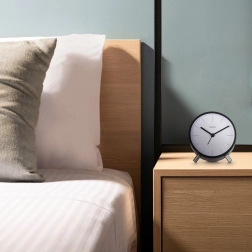 Budzik umożliwia ustawienie jednego czasu alarmu i oferuje praktyczną funkcję drzemki dla wygodnego odsunięcia pobudki. Podświetlenie aktywowane przyciskiem zapewnia szybkie sprawdzenie czasu w ciemności i po chwili samo się wyłącza, aby nie zakłócać snu.