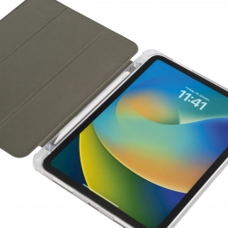 Dzięki przezroczystemu tyłowi podkreślony zostaje oryginalny wygląd urządzenia. Okładka oferuje funkcję podstawki do wygodnego pisania i oglądania wideo, automatyczne włączanie/wyłączanie przy otwieraniu i zamykaniu oraz praktyczny uchwyt na rysik. Antypoślizgowa powłoka i boczne rowkowanie zapewniają pewny chwyt bez niepożądanego żółknięcia materiału.