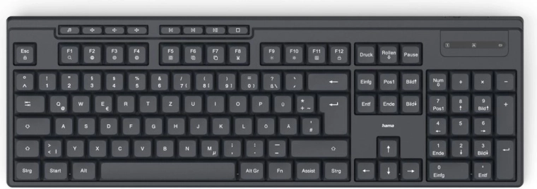 Klawiatura Hama WK-200 zapewnia wygodne rozwiązanie do codziennego użytku. Stabilne połączenie radiowe 2,4 GHz przez odbiornik USB-A oferuje zasięg do 10 metrów, a zasilanie baterią AA eliminuje potrzebę częstego ładowania.