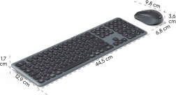 - Zestaw czarnych i szarych klawiszy z pełnym rozłożeniem łącznie z funkcjami multimedialnymi