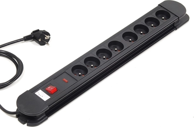 Listwa przeciwprzepięciowa z 8 gniazdami 1,5 m z wyłącznikiem, montaż na ścianie