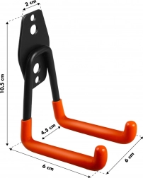 Uporządkuj swój garaż lub warsztat dzięki naszemu uchwytowi garażowemu z mocnej i trwałej stali. Uchwyt pozwala zawiesić różne przedmioty, takie jak opony, rowery, drabiny, narzędzia ogrodowe czy węże, dzięki maksymalnej nośności 70 kg. Jego czarno-pomarańczowy design pasuje do każdego środowiska pracy i zapewnia długą żywotność.