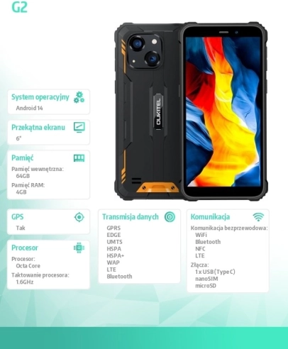 Oukitel G2 został zaprojektowany, aby sprostać nawet najbardziej wymagającym warunkom. Z certyfikatami IP68, IP69K oraz standardem MIL-STD-810H zapewnia wyjątkową odporność na wodę, kurz i wstrząsy. To idealny towarzysz zarówno do pracy w terenie, jak i do aktywności outdoorowych. Jego 6-calowy wyświetlacz IPS o rozdzielczości 1152 x 576 pikseli, chroniony szkłem Corning Gorilla Glass 5, gwarantuje jasny i ostry obraz, co potęguje wrażenia z użytkowania zarówno podczas pracy, jak i rozrywki.