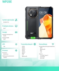 Wytrzymałość i niezawodność: Oukitel WP28E został zaprojektowany z myślą o ekstremalnych warunkach. Specyfikacje takie jak IP68, IP69K i wojskowy standard MIL-STD-810H zabezpieczają telefon przed żywiołami i uszkodzeniami mechanicznymi. Urządzenie ma wzmocnione gumowe narożniki oraz specjalnie uszczelnione osłony portów.