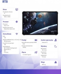 Tablet wyposażono w odporną obudowę z certyfikatami IP68, IP69K i wojskowym standardem MIL-STD-810H, gwarantującą maksymalną odporność na kurz, wodę i uderzenia.
