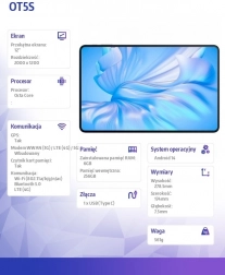 Tablet jest napędzany ośmiordzeniowym procesorem UNISOC Spreadtrum T606, współpracującym z 6 GB RAM i 256 GB pamięci wewnętrznej, aby zapewnić szybkie i płynne działanie aplikacji. Korzystaj nawet z 10 godzin oglądania wideo, 37 godzin słuchania muzyki lub 12,5 godziny grania dzięki wydajnej baterii o pojemności 8250 mAh. Odsłuch muzyki uatrakcyjniają cztery głośniki stereo.