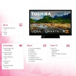 Ciesz się ulubionymi filmami, serialami i sportem w kompaktowym formacie 24". Ten inteligentny telewizor TOSHIBA zapewnia jasny obraz, przejrzyste menu i łatwą obsługę – idealny do mniejszych przestrzeni, gdzie chcesz maksimum rozrywki bez kompromisów.