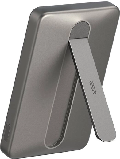 Dzięki silnemu magnetycznemu mocowaniu (1200 g) powerbank trzyma się pewnie iPhone’ów 12 i nowszych, etui MagSafe oraz kompatybilnych akcesoriów ESR. Zintegrowany stojak z nagradzanym wzornictwem (Design Award 2023, Red Dot 2023) umożliwia wygodne oglądanie treści i rozmowy wideo pod idealnym kątem.