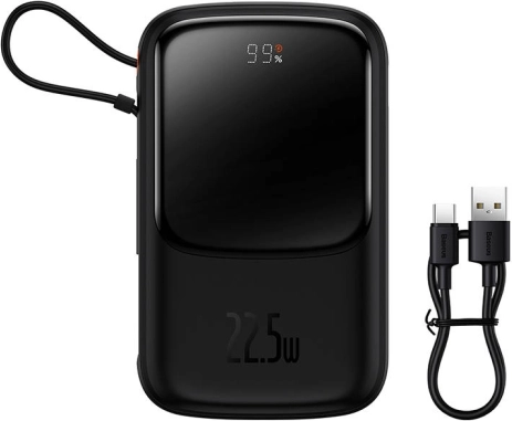 Baseus Qpow Pro to praktyczny i kompaktowy powerbank, idealny dla użytkowników potrzebujących energii w podróży. Dzięki wbudowanemu kablowi USB‑C oraz dwóm dodatkowym portom wyjściowym umożliwia jednoczesne ładowanie nawet trzech urządzeń, co czyni go wszechstronnym pomocnikiem.