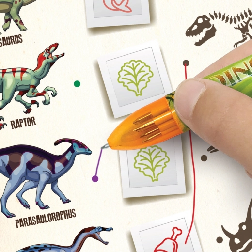 Odkryj świat dinozaurów z notesem DinosArt z zamkiem. Zawiera 200 stron, aktywności, naklejki i strony w linie na notatki.