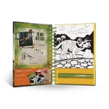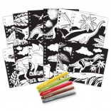 - 12 aksamitnych plansz do kolorowania, 5 mini flamastów, instrukcje, informacyjne strony o dinozaurach