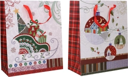 Ta wysokiej jakości papierowa torba z motywem świątecznym ułatwia pakowanie prezentów i nadaje im odświętny wygląd. Dzięki wymiarom 26 × 32 × 12 cm sprawdzi się na książki, zestawy kosmetyczne, świece czy mniejsze pudełka. Wystarczy włożyć prezent i masz natychmiast gotowe eleganckie opakowanie.