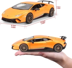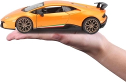 Legendarny LAMBORGHINI Huracán Performante w skali 1:24 ucieszy każdego fana szybkich aut. Metalowe nadwozie (die-cast) z plastikowymi detalami, realistyczne proporcje i precyzyjny lakier czynią z tego modelu atrakcyjny egzemplarz na ekspozycję i do rąk dzieci.
