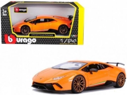 Uzupełnij swoją kolekcję o licencowany metalowy model BBURAGO 1:24 LAMBORGHINI Huracán Performante w pomarańczowym kolorze. Zachwyca szczegółowym wykonaniem, otwieranymi drzwiami i gumowymi oponami. Idealny dla kolekcjonerów i dzieci od 3 lat, dostarczany w pudełku z okienkiem.