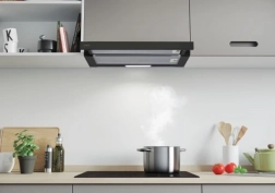 Metalowy filtr i wydajny wyciąg sprawią, że Twoja kuchnia pozbędzie się wszelkich niepożądanych zapachów i pary.
