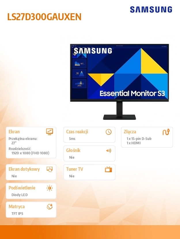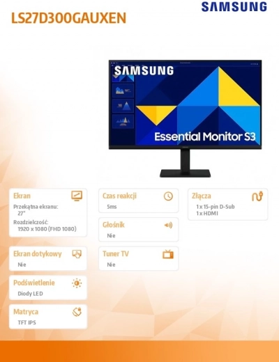 Monitor stawia na praktyczność: niezawodne porty do łatwego podłączenia komputera lub laptopa, stabilna podstawa dla pewnego ustawienia oraz stonowany design, który doskonale odnajdzie się w nowoczesnym biurze i domowym kąciku produktywności.