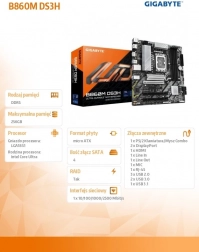 Zbuduj wydajny i niezawodny system z płytą Gigabyte B860M DS3H, która obsługuje najnowsze procesory Intel Core Ultra (2. generacji). Hybrydowa sekcja zasilania 5+1+2 faz zapewnia stabilność nawet pod obciążeniem, a technologia AI PerfDrive udostępnia zoptymalizowane profile BIOS dla wydajności i cichej pracy.
