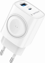 Szukasz uniwersalnej i szybkiej ładowarki do telefonu, słuchawek i smartwatcha? Gembird 20 W łączy USB‑C z Power Delivery oraz USB‑A z Quick Charge 3.0, więc niezawodnie i efektywnie naładuje większość nowoczesnych smartfonów i akcesoriów. Magnetyczny moduł umożliwia wygodne ładowanie Apple Watch bez dodatkowych kabli.