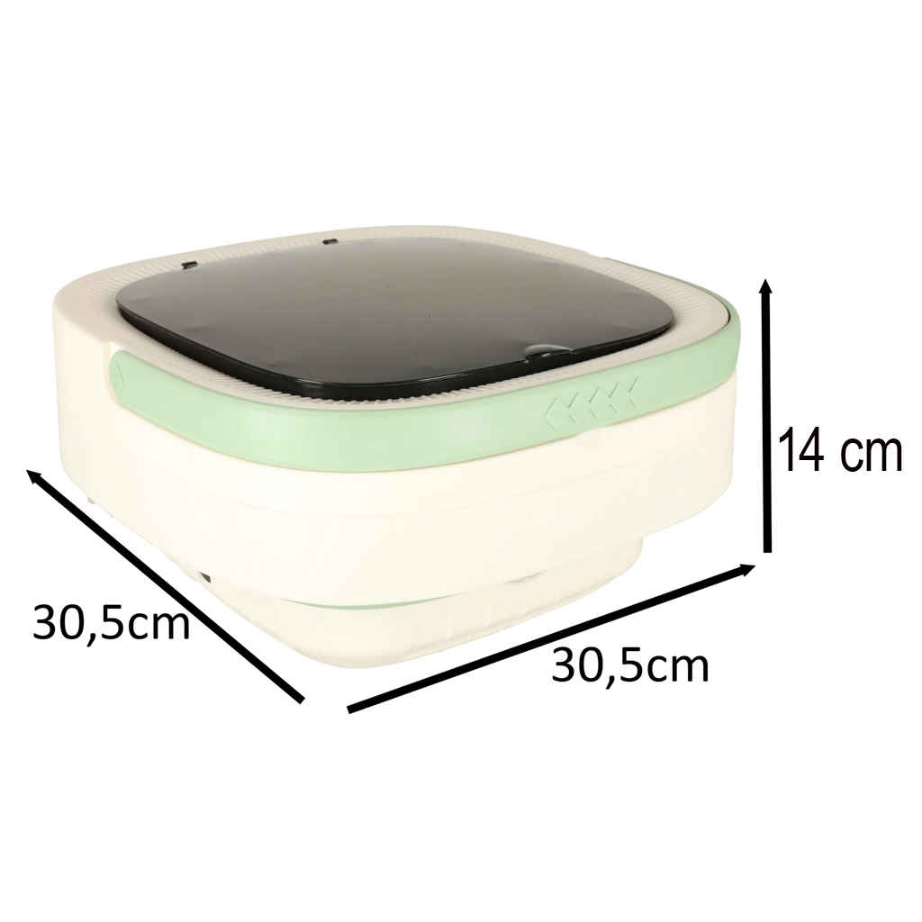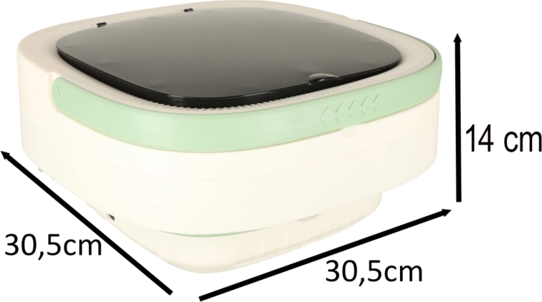 Z tą przenośną pralką wypierzesz koszulki, bieliznę czy dziecięce ubrania gdziekolwiek – wystarczy woda i zasilanie 12 V. Silikonowe składane korpus oszczędza miejsce, dzięki czemu bez trudu zmieści się w walizce lub plecaku, a praktyczny uchwyt ułatwia wygodne przenoszenie.