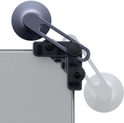 Dwa ramiona zaciskowe z pokrętłami bezpiecznie mocują uchwyt do ekranów o grubości 7,5–14 mm. Zawieszona konstrukcja nie zasłania wyświetlacza samochodu.