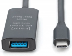 Aktywny kabel przedłużający USB 3.2 Gen1 od Digitus oferuje wysoką prędkość transferu danych do 5 Gbit/s na odległość 10 metrów. Idealny do podłączania urządzeń na dłuższe odległości bez utraty szybkości.