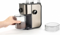 Żarnowy system mielenia zapewnia równomiernie zmielone ziarna bez przegrzewania, dzięki czemu możesz cieszyć się bogatym i autentycznym smakiem kawy. Wyjmowany i przezroczysty pojemnik na mieloną kawę ułatwia czyszczenie.