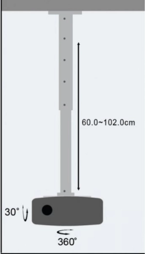 Regulowana długość 60–102 cm umożliwia precyzyjne ustawienie obrazu, a możliwość pochyłu i obrotu w poziomie ułatwia idealne wyrównanie projekcji w każdej przestrzeni.