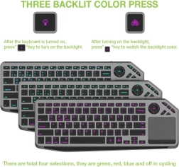 Podświetlenie w siedmiu różnych kolorach z trzema poziomami jasności umożliwia łatwe korzystanie także przy niedostatecznym oświetleniu. Zintegrowany touchpad zapewnia płynną nawigację bez potrzeby używania myszy.
