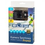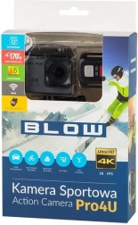 Lekka i wytrzymała kamera sportowa BLOW Pro4U uchwyci Twoje przygody w 4K przy 30 fps, oferuje Wi‑Fi, szerokokątny obiektyw 170°, czytelny 2" LCD oraz wodoszczelną obudowę do 30 m. Obsługuje karty microSD do 64 GB, nagrywanie podczas ładowania i może służyć jako kamera internetowa.