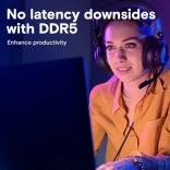 Zoptymalizowana efektywność energetyczna Crucial DDR5 wprowadza zarządzanie napięciem na module za pomocą zintegrowanego układu PMIC, co prowadzi do lepszego zasilania i lepszych sygnałów. Napięcie robocze jest niższe, tylko 1,1 V w porównaniu do 1,2 V DDR4.