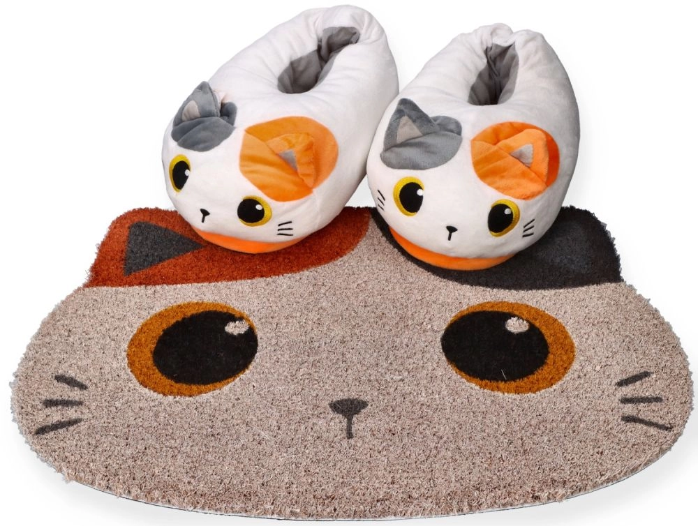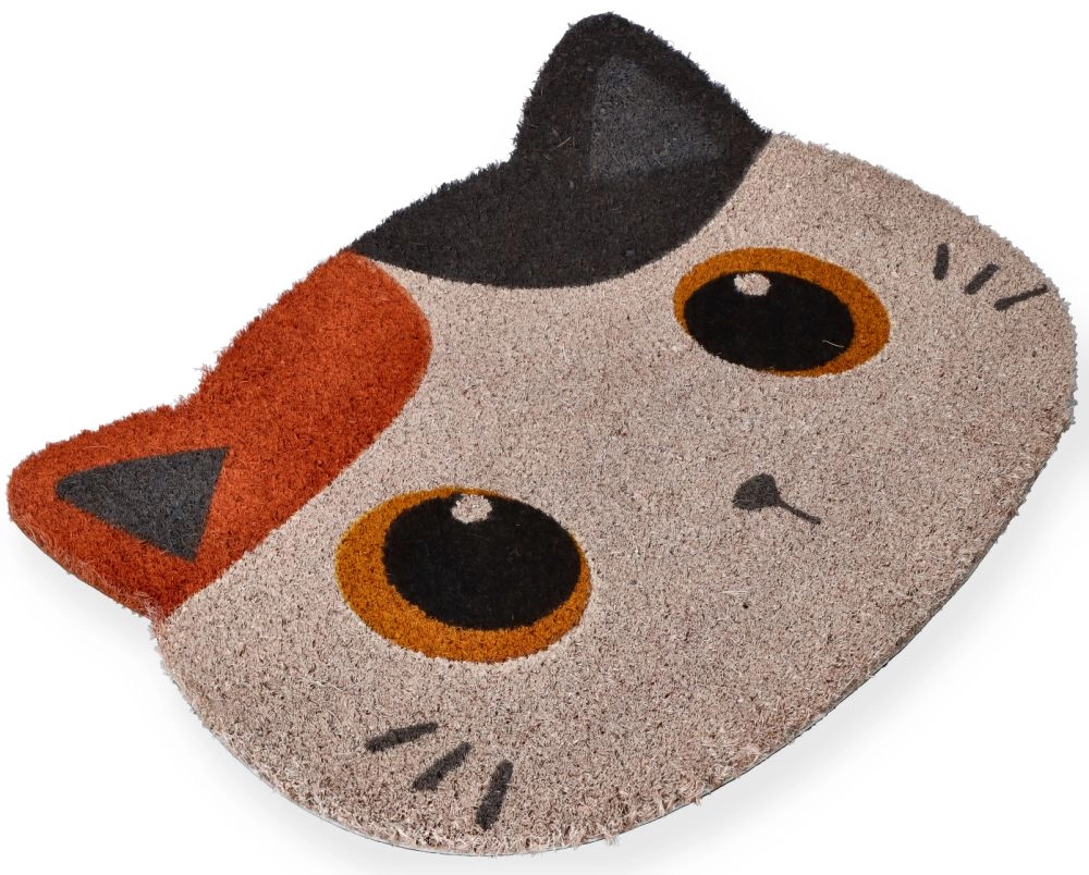 Ta oryginalna wycieraczka wejściowa z motywem kociej głowy łączy praktyczną funkcję z dekoracyjnym wyglądem. Bardziej chropowata, tekstylna powierzchnia skutecznie wyciera zanieczyszczenia i kurz z podeszw, a niski profil nie przeszkadza przy otwieraniu drzwi.