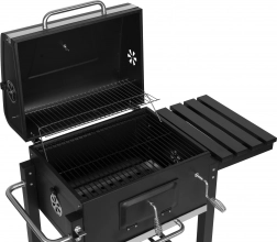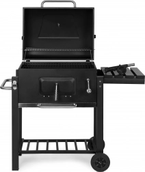 Duża powierzchnia grillowania 53×34 cm i ruszt podgrzewający pozwalają przygotować porcje dla kilku osób jednocześnie. Praktyczne półki, haczyki i otwieracz do butelek trzymają przyprawy i akcesoria pod ręką. Metalowa konstrukcja z powłoką proszkową jest odporna na wysoką temperaturę i warunki pogodowe, a kółka transportowe ułatwiają przemieszczanie po ogrodzie.