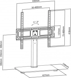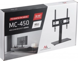 Uniwersalny stojak Maclean MC-450 jest przeznaczony do użycia na szafce telewizyjnej i jest kompatybilny z telewizorami marek takich jak Sony, LG, Samsung, Philips i innymi. Wymiary ekranu są orientacyjne i odpowiednie dla TV odpowiadających standardom VESA: 75x75, 100x100, 200x100, 200x200, 400x200, 300x300, 400x400 mm.