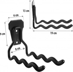 Nowoczesny czarny design z gumową powłoką chroni przechowywane przedmioty przed zarysowaniami i uszkodzeniami. Montaż jest prosty, a wszystkie potrzebne elementy znajdują się w zestawie, co pozwala na szybką i bezproblemową instalację zarówno w domu, jak i w środowisku profesjonalnym.