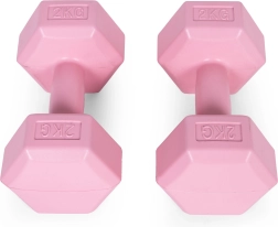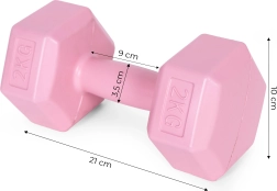 Trenuj efektywnie w domu z różowymi hantlami ModernHome. Zestaw zawiera 2 sztuki po 2 kg, które wspierają kompleksowe wzmocnienie całego ciała – ramion, pleców, brzucha, nóg i pośladków. Dzięki sześciokątnemu kształtowi hantle są stabilne i bezpieczne, więc możesz je swobodnie odkładać podczas treningu obwodowego i przerw.