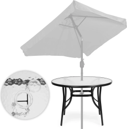 Na środku blatu znajduje się otwór o średnicy 4,5 cm, dzięki czemu z łatwością dodasz parasol i stworzysz przyjemny cień do relaksu i posiłków.
