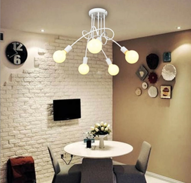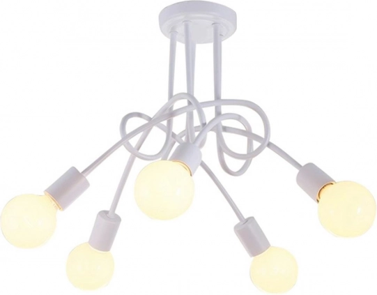 Ten nowoczesny żyrandol oferuje pięć niezależnych oprawek E27, dzięki czemu z łatwością dobierzesz intensywność i atmosferę oświetlenia. Minimalistyczne metalowe wykończenie w bieli pasuje do współczesnych aranżacji i doskonale prezentuje się zarówno z klasycznymi, jak i designerskimi żarówkami E27.