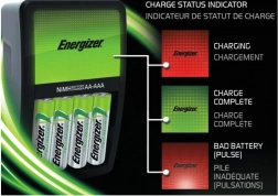 Ładowarka ENERGIZER Maxi to niezawodny wybór do domu i biura. Umożliwia wygodne ładowanie najczęściej używanych ogniw AA i AAA, a dzięki inteligentnym funkcjom, takim jak kontrolka LED oraz automatyczne zakończenie ładowania, jej używanie jest bezpieczne i przejrzyste.