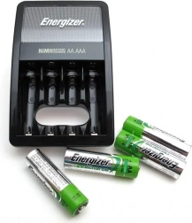 Praktyczna ładowarka ENERGIZER Maxi to przystępne cenowo rozwiązanie do codziennego użytku. Jednocześnie ładuje 2 lub 4 akumulatory AA/AAA, oferuje wskaźnik LED postępu, automatyczne wyłączenie chroniące przed przeładowaniem i jest zasilana bezpośrednio z gniazdka sieciowego. W zestawie znajdują się 4× akumulatory AA 2000 mAh.