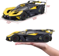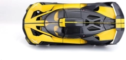 Odkryj wierną replikę rewolucyjnego supersamochodu BUGATTI BOLIDE w precyzyjnym wykonaniu. Metalowa karoseria die-cast, realistyczne proporcje i kontrastowe żółto-czarne malowanie podkreślają agresywne linie aerodynamiczne, dzięki czemu model wyróżnia się w każdej kolekcji.