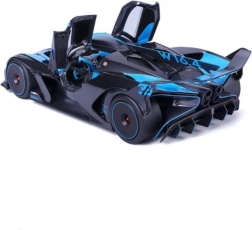 Ten realistyczny model samochodu sportowego w niebiesko‑czarnym wykończeniu wiernie oddaje kształty i charakter ikonicznego hipersamochodu BUGATTI Bolide. Metalowe nadwozie, precyzyjne detale i funkcjonalne elementy ucieszą każdego miłośnika szybkich aut.