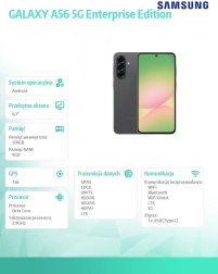 Edycja Enterprise zapewnia wydłużone wsparcie programowe, narzędzia do zarządzania oraz platformę bezpieczeństwa Samsung Knox do ochrony danych firmowych. Telefon w kolorze grafitowym wyróżnia się smukłą obudową, dużym wyświetlaczem do komfortowego czytania i multimediów oraz potrójnym aparatem do ostrych ujęć w dzień i w nocy.
