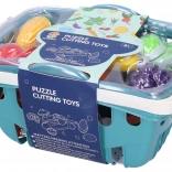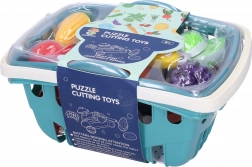 Praktyczny koszyk w niebieskim kolorze utrzymuje wszystko w jednym miejscu, więc zestaw jest idealny w domu i w podróży. Świetny jako prezent dla małych kucharzy, którzy lubią naśladować dorosłych i bawić się w dom.