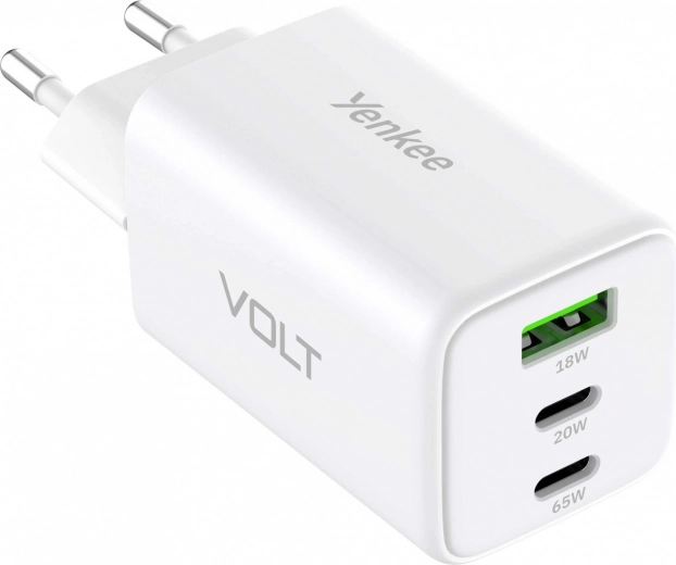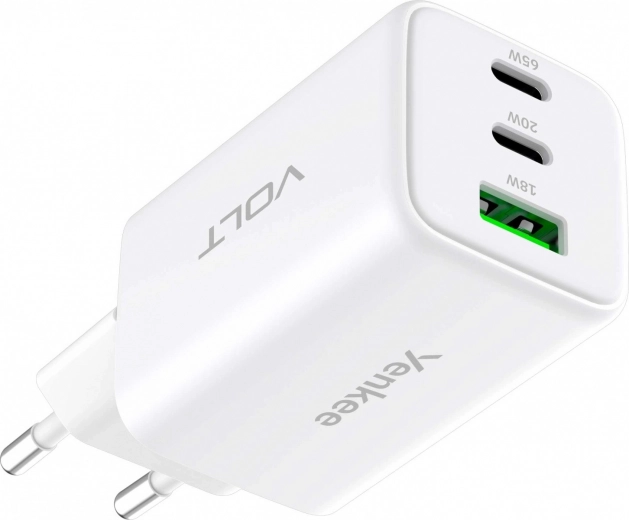 Ładowarka sieciowa VOLT 65 W GaN, 3× USB (2× USB‑C + 1× USB‑A) z Power Delivery 3.0 i QC 4.0